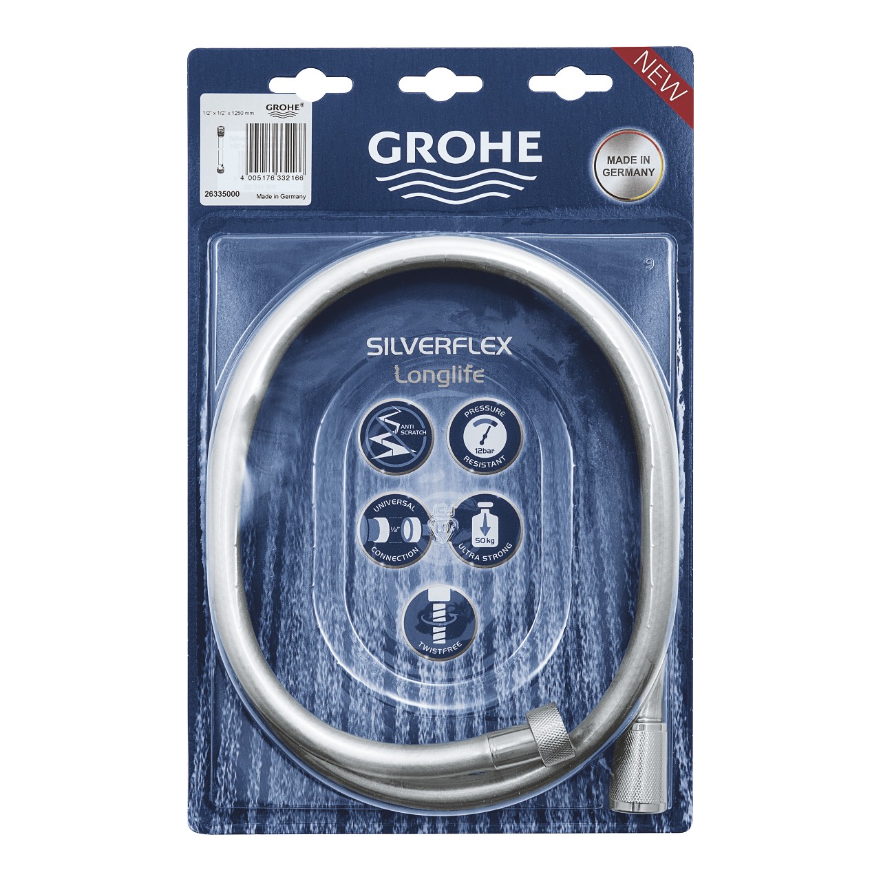 .يتكون من: دش يدوي أبيض مع تحكم في الزناد 28020L01)، حامل دش حائطي (28605)، خرطوم دش Silverflex طويل العمر 125 سم (26335000).