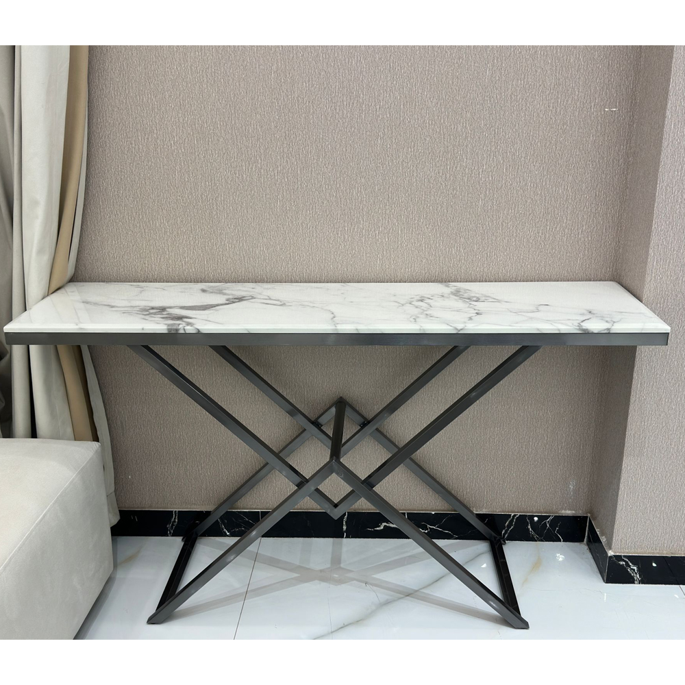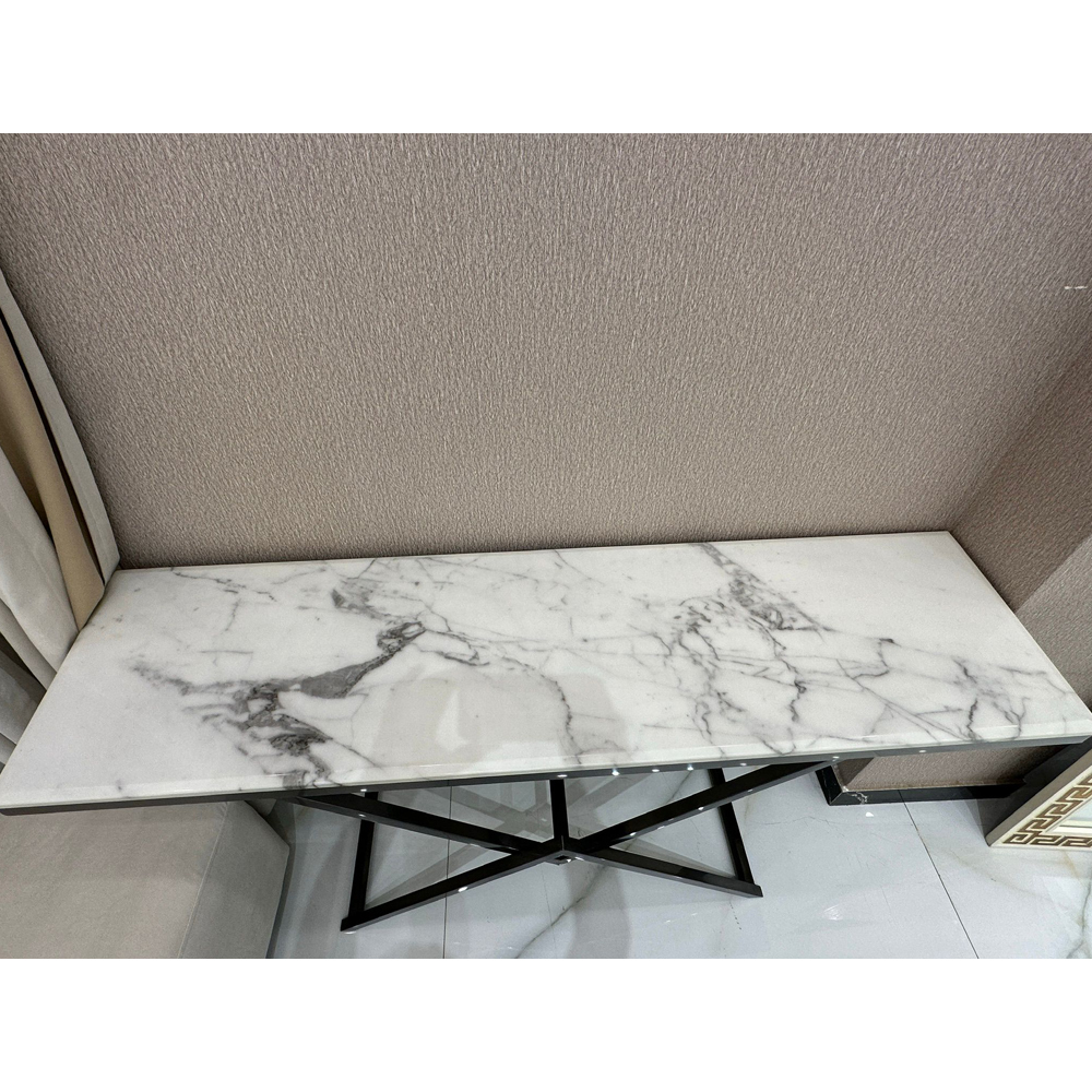 console table in black steel anti-rust and scratch with a marble surface