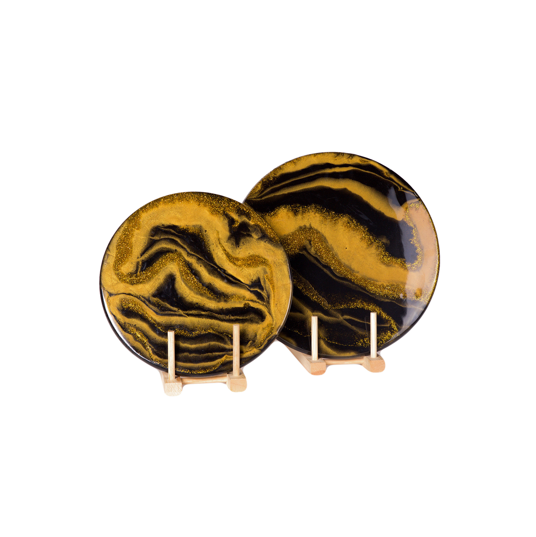 Round Serving Platters - Black/Gold ( 2 pcs.)